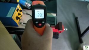 Qualquer notebook, que chega até nós seja para manutenção e/ou limpeza com troca de pasta térmica, avaliamos a temperatura de saída do ar quente na “grelha” do dissipador de calor com termômetro digital a laser. E baseado nessa medição já colocamos o equipamento em nossa bandeja plugada a USB do equipamento.